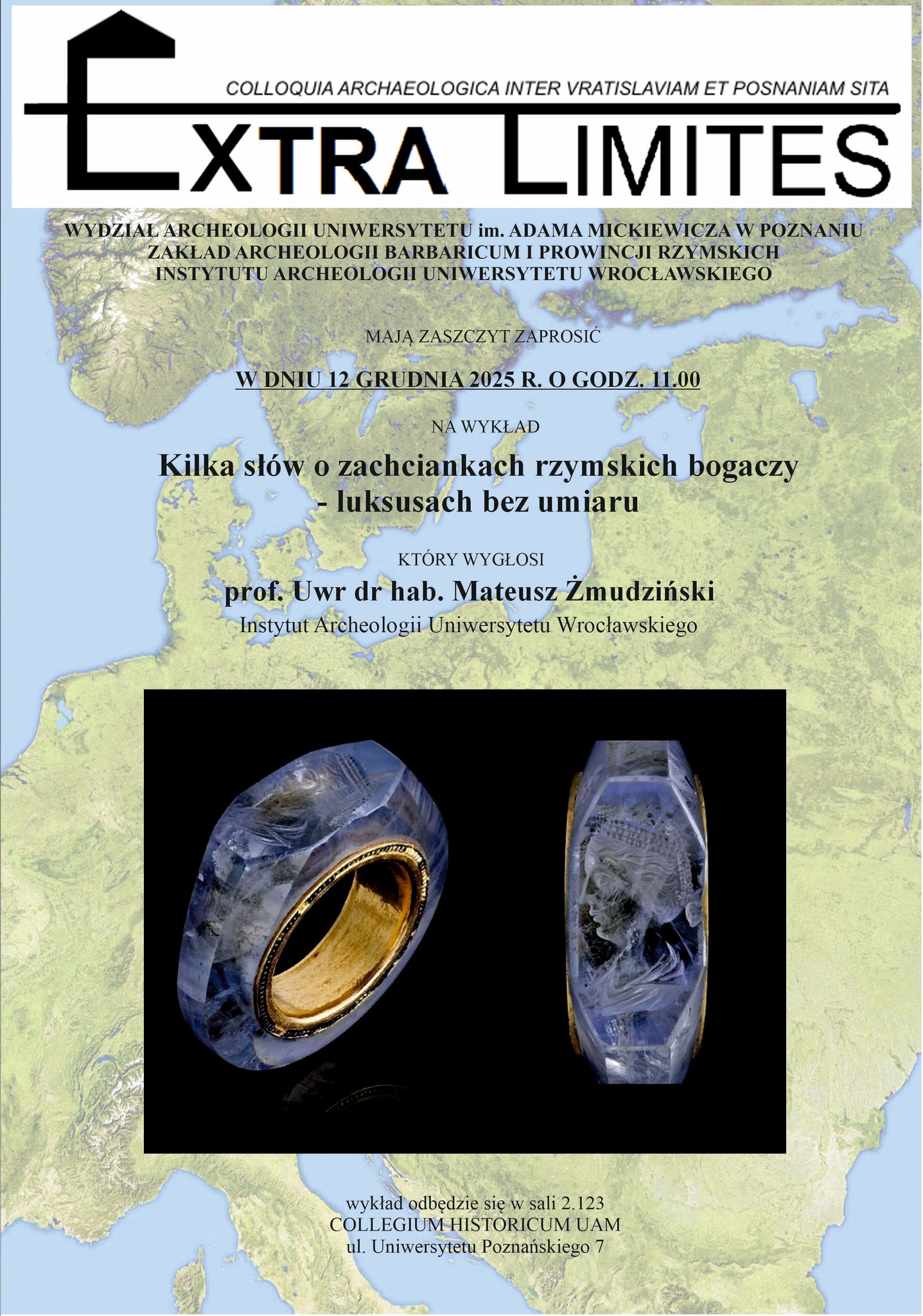 Nie opadły jeszcze emocje po ostatnim spotkaniu w ramach naszego cyklu (http://extralimites.pl/archiwum/), a my już spieszymy poinformować o kolejnym seminarium. Na wykład pt. „Kilka słów o zachciankach rzymskich bogaczy – luksusach bez umiaru”, który wygłosi prof. UWr dr hab. Mateusz Żmudziński z Instytutu Archeologii UWr, zapraszamy do Poznania w dniu 12 grudnia!